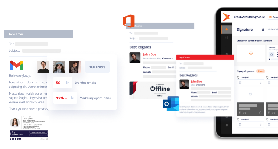 Darüber hinaus unterstützt sie die Integration von Unternehmenslogos, sozialen Medien, rechtlichen Haftungsausschlüssen und Marketing-Bannern. Crossware Mail Signature automatisiert den Signaturprozess, spart Zeit und reduziert Fehler. Durch die zentrale Verwaltung wird die Markenkonsistenz gewahrt und das professionelle Erscheinungsbild in der Kommunikation sichergestellt.
